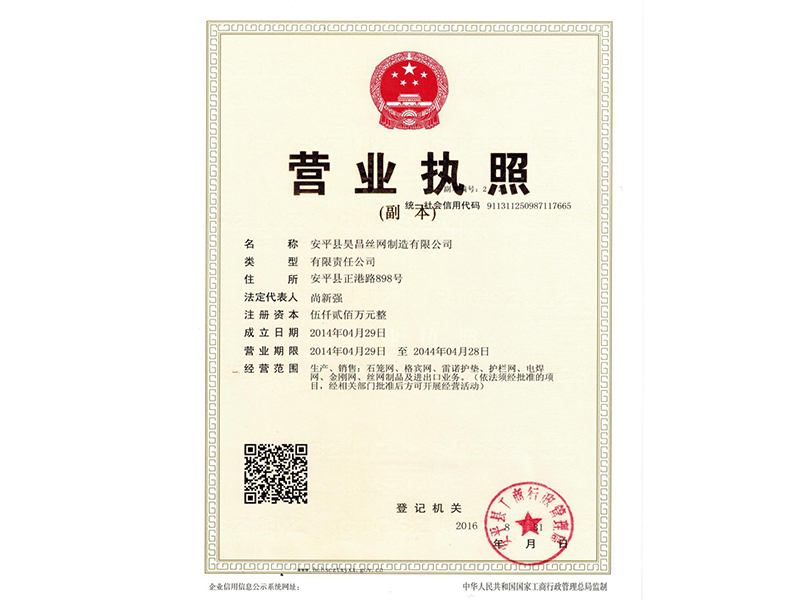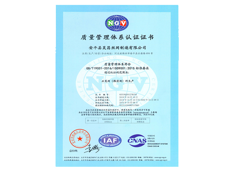安平縣昊昌絲網制造有限公司成立于2006年,占地40000平方米,擁有生產設備二十余臺,率先引進流水線作業,是一家專業從事石籠網、格賓網、雷諾護墊生產的企業。經過不懈的努力,公司榮獲了省優產品、政府質量獎等眾多殊榮并擁有多項專利,積累了非常豐富的經驗和大量的專業化技術人才。我們已率先通過了ISO9001質量管理體系認證,并參與了三峽,南水北調,三江治理等大型堤坡防護及水利工程,歡迎來電來公司洽談。